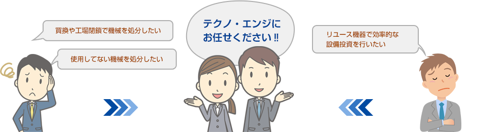 乳業界を中心とした食品業界の皆様へ、リユース機器利用のコンサルティング、ならびリユース機器の販売、買取などを行っております。弊社独自の査定方式により、[他社よりも高く買い取り、安く販売する]をモットーに食品製造用機器、品質検査機器、機電機器(ユーティリィティ機器)などを取り扱っております。取引先は機器購入、売却希望合わせて300社を超え、皆様継続的なお取引をいただいております。ぜひ効率的な設備投資に経歴のはっきりとした優良リユース機器をご利用になってください。